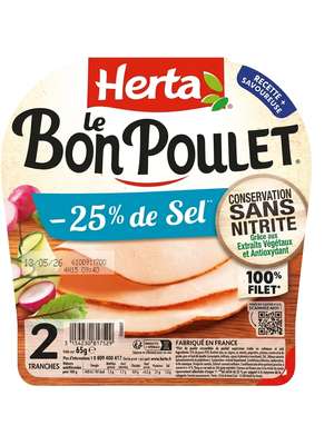Blanc de poulet -25% de sel sans nitrites, Herta (2 tranches, 65 g)
