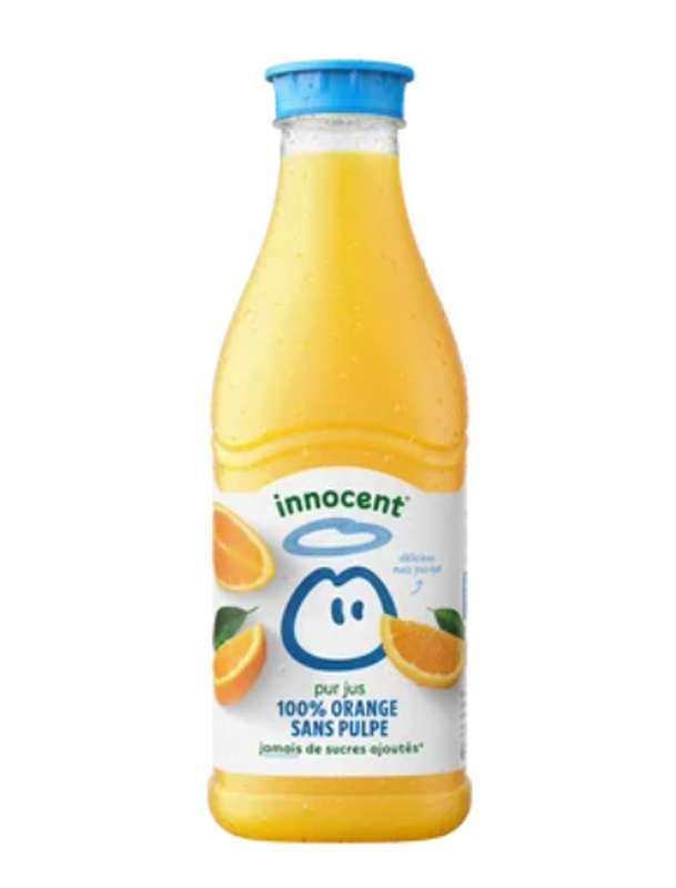 Chez innocent, on s’est rendu compte que la perfection était déjà là, dans la nature. Pour s’en convaincre, il suffit de regarder autour de nous : un joli champ de coquelicots, un paysage de montagnes enneigées ou encore… de jolies oranges sur un arbre. Du coup, pour faire nos jus d'orange, on a décidé de laisser faire la nature. Elle fait pousser les oranges et nous on s’occupe juste de les cueillir et de les presser. Et ça donne un bon jus d'orange sans pulpe. Parfait pour votre petit déjeuner. les fruits qui ont tout bon: - Pas de colorants, ni de conservateurs, ni de E-machin-chose - source de vitamine C Chez innocent, on fait des boissons saines et délicieuses avec des ingrédients issus de la nature. Et depuis notre création on n'a jamais changé notre façon de faire. Pour faire nos jus de fruits frais, on sélectionne les meilleurs fruits, on les presse et c'est tout. Parfait pour vos petits déjeuners.