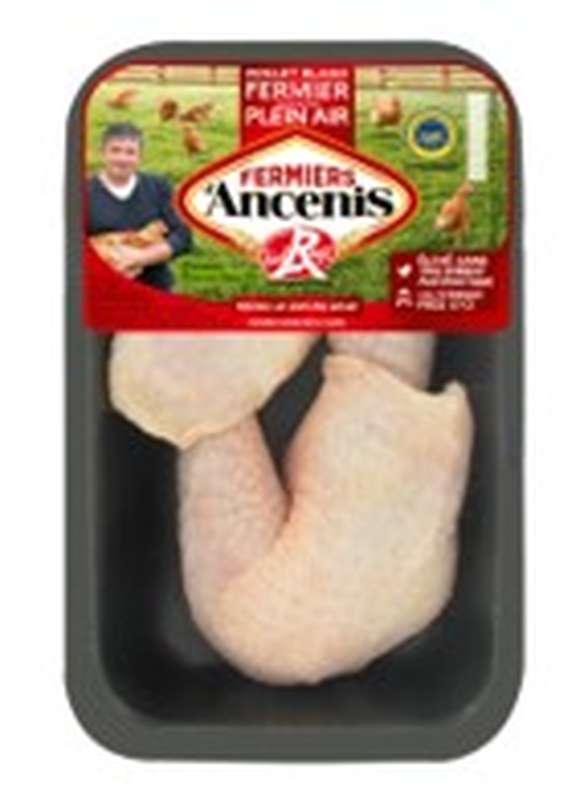 Origine de la viande : France (naissance, élevage, abattage). Produit vendu en barquette sous atmosphère. Poulet Fermier Label Rouge. Elevé en plein air pendant 81 jours minimum. Poulet élevé sans traitement antibiotique. Poulet nourri sans OGM (<0.9%). Alimenté avec 100% de produits végétaux (dont 75% de céréales), minéraux et vitamines. IGP Volailles d’Ancenis Poids moyen : 400 g