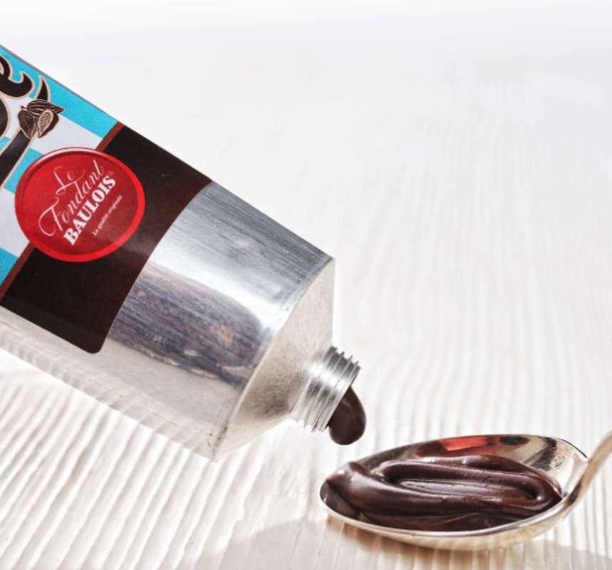 Délicieux sur des tartines, crêpes ou avec une glace. Coeur de Fondant Baulois en tube, à tartiner ou déguster tel quel. Cette pâte à tartiner est sans huile de palme, sans noisette ni additif. A tout moment de la journée, dégustez cette délicieuse pâte à tartiner au chocolat fabriquée de façon artisanale. Dès le matin, elle se déguste sur une tartine ou une brioche. Le midi, elle accompagne une boule de glace au dessert. Au goûter, vos crêpes ou gauffres prennent un doux parfum de Fondant Baulois, un régal. Le soir, épatez vos amis et tentez une tarte aux poires nappée de la Pâte à tartiner Fondant Baulois, un délice ! Mais les plus gourmands la dégusteront directement à la petite cuillère.
