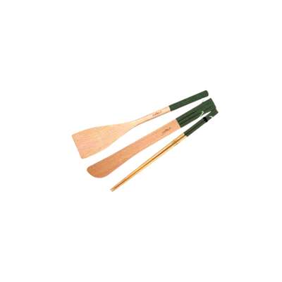 Set d'ustensiles en bois idéal pour cuisiner sans abîmer votre cocotte, votre poêle ou wok. Contient: Spatule, pince et baguettes. Assortissez vos ustensiles à votre incroyable cocotte et à votre poêle Cookut ! Coloris fougère. En bois, elles ne passent pas au lave-vaisselle.
