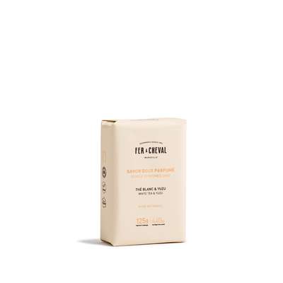 Laissez-vous envoûter par cette savonnette à l’odeur unique de thé blanc et de yuzu. Senteur verte, boisée et légèrement aquatique, ce parfum mixte conviendra autant aux hommes et aux femmes. Fabriqué avec du savon de Marseille de la savonnerie Fer A Cheval, cette savonnette enrichie en huile d’amande douce et en beurre de karité nettoie la peau tout en douceur.