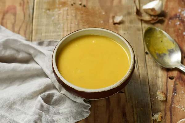 La soupe automnale par excellence à base de butternut et de patate douce bio bien mijotée. On y ajoute une pincée de muscade et le tour est joué !