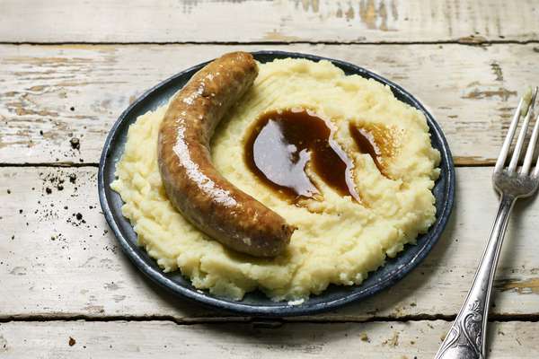 Une saucisse de Toulouse label rouge braisée puis rôtie dans nos cuisines avec du jus de poulet et une infusion d'herbes aromatiques.