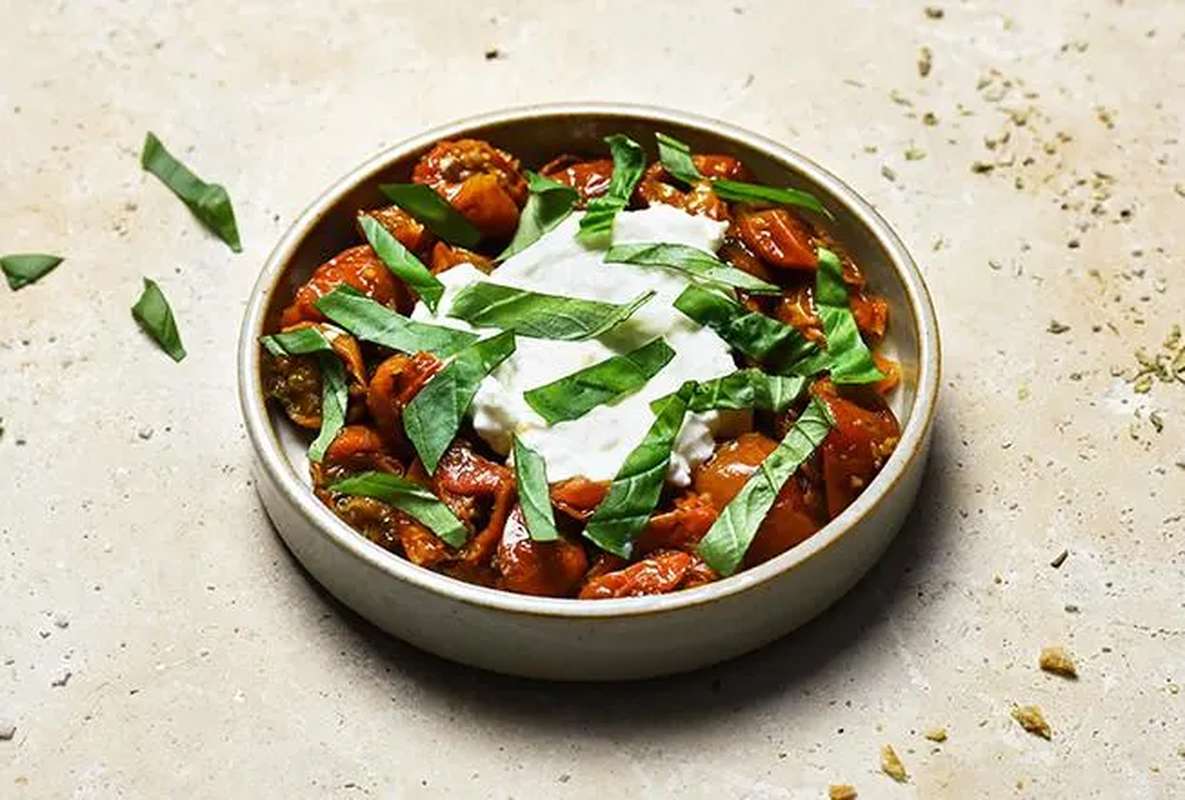 Tomate cerise mi-séchée - Stracciatella (Lait pasteurisé) - Basilic