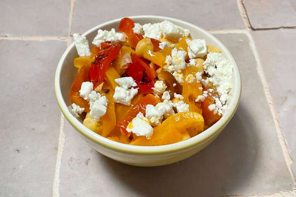 Une entrée dans un esprit antipasti méditerranéen avec des poivrons grillés naturellement sucrés et de la feta bien fraîche.