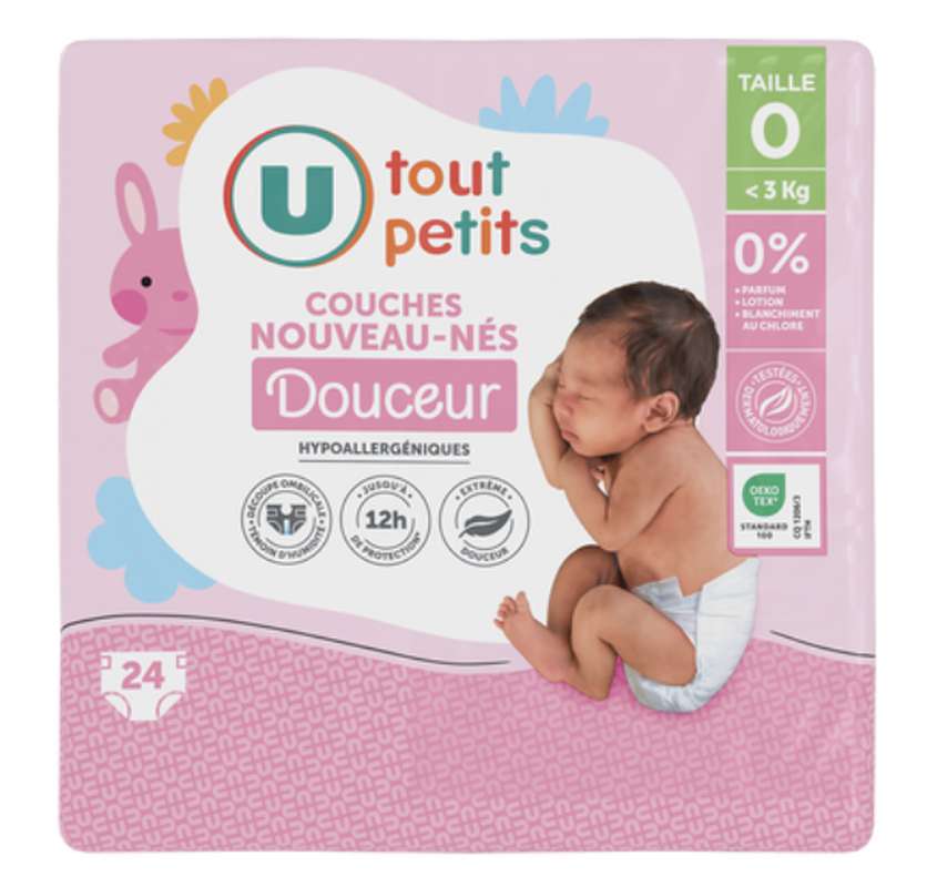 Couches douceur T0 / 0-3 kg, U tout petits (x 24)