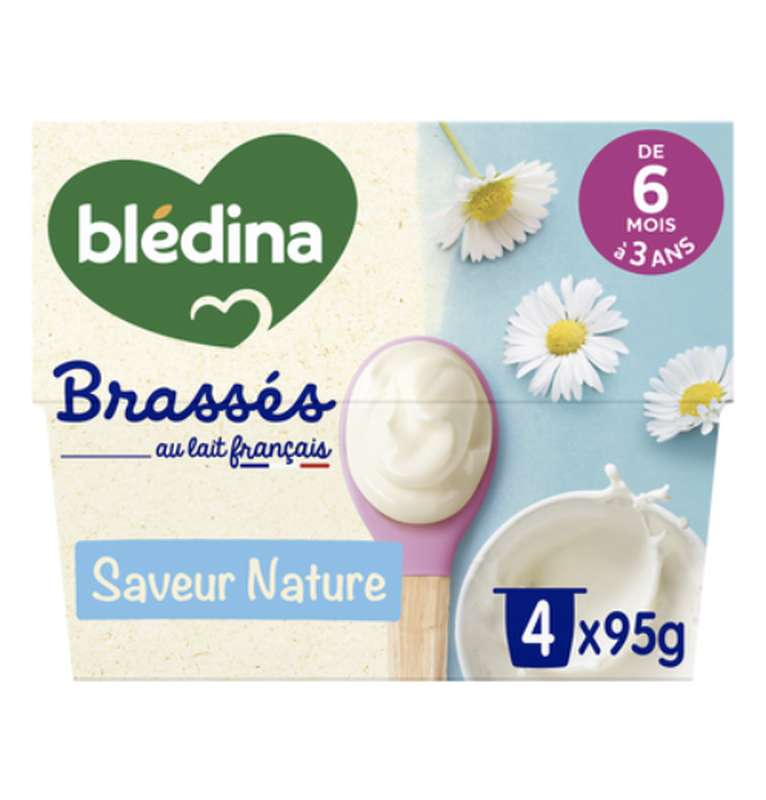 2 Packs de 2 Brassés saveur nature - dès 6 mois, Blédina (4 x 95 g)