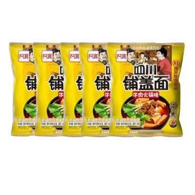Un large éventail de nouilles couvertes du Sichuan à partir des matières premières sur la porte, le gâteau sélectionné farine de blé de haute qualité mélangé avec de l'eau potable, sans aucun additif, les ingrédients de conservation ; des percées innovantes dans le processus de production, l'utilisation de la technologie de traitement sans friture, à travers la technologie de maturation à haute température de la vapeur, de sorte que la farine dans les nutriments a été de maintenir aucune perte, et de garantir que la ténacité de la croûte est lisse. La dureté de la peau et la soupe secrète permettent de restituer au maximum les caractéristiques des produits de nouilles du Sichuan et de Chongqing !