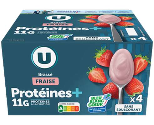 Dénomination légale : YAOURT BRASSÉ SUCRÉ À LA FRAISE, AROMATISÉ ET RICHE EN PROTÉINES